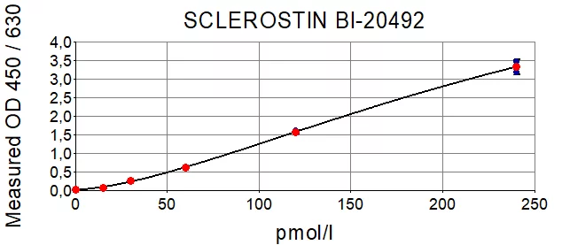 The human Sclerostin ELISA kit is an overnight, 96-well sandwich ELISA for the quantitative determination of human Sclerostin in serum, plasma, urine and cell culture supernatant. The Sclerostin ELISA employs human serum-based standards to ensure the measurement of biologically reliable data.